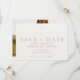 Feiern Sie Ihre Liebe mit einem Toast und einem zeitlosen Stil. Diese elegante Wine Toast Save the Date-Karte zeichne eine moderne Linie, in der ein Paar sanft klingende Weingläser stehen, die den süßen Anfang Ihres Lebens symbolisieren. Mit eleganter Goldserf-Typografie und einem sauberen, modernen Layout ist dieses Design perfekt für Paare, die subtile Schönheit und raffinierten Charme schätzen. Personalisieren Sie Namen, Datum und Ort, um Ihre Hochzeitsvision zu erfüllen. Passen Sie Ihr Lieblings-Verlobung-Foto auf der Rückseite an. Egal ob Sie eine Weinhofhochzeit, eine Städtereise oder eine intime Ansammlung mit Ihren Lieblingsmenschen planen, dieses Design Set den perfekten Ton - mühelos, herzlich und herzlich.