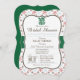 Niedliche, elegante Wintersaison, Weihnachten Bridal Polterabend Einladung auf rot, braun und blau Schneeflocken Muster. Enthält grüne Weihnachtsglocken. Ideal für Winterurlaub, Brautparty in der Urlaubssaison!