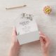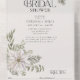 Elegante Winter Brautdusche mit einer immergrünen, wasserfarbenen Vegetation mit weißen Blume und Rezeptionskarte für ein einzigartiges, elegantes Aussehen