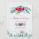 Elegante Weihnachtszeit-Party Einladung mit Aquarelldesign. Die Einladung umfasst Waldkiefern, schicke Typografie und eine Wintergarage mit Poinsettia, Blättern, Beeren, Kiefernzapfen und Grünpflanzen. Der gesamte Wortlaut ist vollständig editierbar. Bitte stöbern Sie in meinem Geschäft, um Wohngestaltung und Geschenke zu koordinieren.
