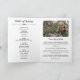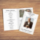 Elegantes weißes gefaltetes Beerdigungsprogramm mit Fotos, eleganten Schriftart und geschmackvollen Details. Weiß gefaltetes Beerdigungsprogramm mit schwarzem Text und eleganten Details personalisiert mit Fotos, Nachhilfe, Dienstordnung und Bestätigungen.