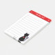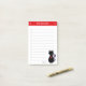 Elegante Post-it-Notizen mit personalisierter To Do List und schwarze Katzenklatsche Silhouette auf rot und weiß.