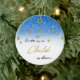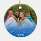 Dieses elegante Weihnachtsschmuck zeigt die Schrift von Isaiah 9, die sich auf den kommenden Messias bezieht, Jesus, "Uns ein Kind ist geboren" auf den Imitaten blauen Glitzer mit einem allerlei Wirkung und eines Ihrer eigenen Fotos auf der Rückseite mit dem Jahr. Einfach mit Ihrem eigenen Foto anpassen. Das ist ein großartiger Schmuck für die Zuhause mit weißem und blauen Weihnachtsbaum oder Dekoration.