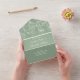 Grün, minimalistisch, elegant, rustikal, modern gefaltete Ehe, Foto, QR-Code Hochzeit alles in einer Einladung. Das dreifache, budgetäre Set. Sie können es mit Ihren eigenen Daten personalisiert.