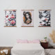 Eleganz in Bloom: Blumen und Portrait Harmonie Wandteppich Mit Holzrahmen