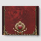 Eleganz in rotem Glanz mit einem verzierten Herz. Der Rahmen selbst ist kunstvoll gestaltet und mit aufwändigen Goldmotiven dekoriert, darunter Blumenmuster und verzierte Verzierungen. Diese goldenen Elemente verleihen dem Gesamtbild eine Touch von Opulenz und Eleganz. Ein herzförmiges Emblem ist von verzierten Goldverzierungen umgeben. Das Herz symbolisiert Liebe und Zuneigung.