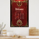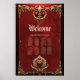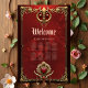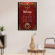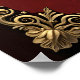 Eleganz in rotem Glanz mit einem verzierten Herz. Der Rahmen selbst ist kunstvoll gestaltet und mit aufwändigen Goldmotiven dekoriert, darunter Blumenmuster und verzierte Verzierungen. Diese goldenen Elemente verleihen dem Gesamtbild eine Touch von Opulenz und Eleganz. Ein herzförmiges Emblem ist von verzierten Goldverzierungen umgeben. Das Herz symbolisiert Liebe und Zuneigung.