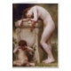 Elegy (auch Douleur d'Amour, oder Schmerz der Liebe) von William-Adolphe Bouguereau, 1899, ist ein Öl auf der Leinwand Gemälde einer weiblichen Figur, die über eine Krypte in einem Wald trauert. Eine geflügelte Kuppe an ihren Füßen wischt Tränen aus den Augen. Bouguereau malte wahrscheinlich die glatte, realistische Figur aus dem Leben, mit Einflüssen aus der klassischen Antike und der Renaissance. William-Adolphe Bouguereau (1825 - 1905) war ein französischer Maler, der an der Ecole des Beaux-Arts in Paris und der Villa Medici in Rom ausgebildet wurde. Er war mit großem Erfolg im französischen Salon vertreten und wurde einer der bekanntesten und wohlhabendsten Künstler seiner Zeit. Bouguereau arbeitete in der französischen akademischen Tradition, einer Schule moderner Maler des späten 19. Jahrhunderts, die sich auf die menschliche Figur und klassische Fächer in hochpolierten Werken des optischen Realismus konzentrierten. Sein Hauptinteresse war die weibliche Figur, die normalerweise quasi-klassische, fein gezeichnet Konturen in Fächern vermittelt wird, die oft sentimental waren. Im 20. Jahrhundert nahm Bouguereau mit dem Aufstieg des Modernismus seinen Ruf stark ab, aber das Interesse an seinen traditionellen figurativen Gemälden ist in den letzten Jahren wieder gestiegen.