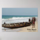 Picture of canoe and fishermen at the shore of Eleko Beach (Atlantic Ocean). Lagos, Nigeria.