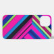 Dieses auffallende Design zeichnet sich durch eine dynamische Anordnung geometrischer Formen in einer lebhaften Palette aus Rosa, Blau, Grün und Schwarz. Die Komposition schafft ein Gefühl von Tiefe und Bewegung.