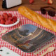 Diese Teller sind mit einer elektrischen Gitarre auf der Vorderseite ausgestattet.
