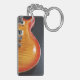 Schlüsselanhänger oder Schlüsselring mit Nahaufnahmebild einer elektrischen Gitarre mit Kirschsonnendurchbruchende und Flammenahorn übersteigen.