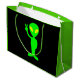 Wir kommen in Frieden! Geben Sie ein Geschenk in der Art mit dieser Geschenktasche des anziehenden alien des Auges themed. Dieses Ausrüstungsbeschreibungen ein niedliches alien, welches das Friedenszeichen auf einem hellen grünen und schwarzen Neonhintergrund gibt. Dieser Entwurf ist auch auf Seidenpapier, Geschenk-Packpapier und Geschenkumbauten sowie andere Farbschemas verfügbar. Macht ein großes Einzelteil für den alien/UFO/astronomy oder Scifiliebhaber!