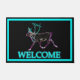 Eine helle, neonähnliche Darstellung eines Karibus, auch als Rentier bekannt, zusammen mit dem Textlesen "WILLKOMMEN". Inspiriert durch die Nordlichter.