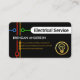Ein schwarzes Cover zeichnet sich durch eine elektrische Symbolverkabelung aus. Oben auf der Karte befindet sich eine weiße Karteikarte, die Ihren Firmennamen enthält. Die vertikalen Leitungen auf den links unterstützen Ihren prestigeträchtigen Namen mit den unten stehenden Kontaktdaten. Unten rechts ist ein goldenes Glühbirnen-Logo, das Sie benutzen können. Auf der Rückseite, in einem dunkelgrauen Cover, befindet sich das Gold-Logo oben, gefolgt von dem Firmennamen, den Kontaktdaten und einem Slogan. Eine Karte für alle, die speziell für elektrische Unternehmen verwendet werden soll. #electrician #electricalservices #electricalcare repariert #electricalsymbole #lighting #lighting #electricaltrad #electricecaliale #electricale #zazzlemade