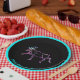 Eine neonähnliche Darstellung eines BullenElchs auf schwarzem Hintergrund. Fügen Sie Ihren eigenen Text hinzu. Inspiriert durch die Nordlichter.
