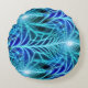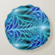 Elektrisches blaues leuchtendes Fraktal Wiederholu Rundes Kissen
