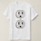 Elektrischer Spaß Kostüme für jeden! Funny Fake extravagante Kleidung T - Shirt Elektro-Auslass Sofortkostüm macht Sie ein Stecker in der Wandsteckdose auf einem weißen T - Shirt.