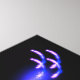 Ein neonähnliches, lila und blaues Fraktal-Bild, das dem Kopf eines verstopften Tieres auf dunklem Hintergrund ähnelt. Passen Sie Ihren eigenen Text an.