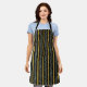 Diese auffallende Schürze besteht aus vertikalen Bändern glänzender Messingbänder, die sich abwechselnd mit gerahmten, Vintag gedrehten Elektrodrähten abwechseln, die Funken und leuchtende elektrische Strömungen auslaufen lassen. Das Design erinnert an Science Fiction oder Steampunk-Geräte und verleiht Ihren Abenteuern beim Kochen ein elektrisierendes Element.