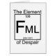 Die Wissenschaft hat eine neue Chemikalie im Periodensystem abgeschieden - das Element der Verzweiflung, abgekürzt als FML. Diese extrem flüchtige Substanz verursacht schlechte Haare, Kämpfe, Ironie, Gefühle von Hilflosigkeit und verärgerte Ausrufe von "F*ck my life!"! Chemie für die Massen - ein perfektes Geschenk für einen schlechten Tag!