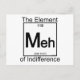 Wissenschaft hat abgeschieden eine neue Chemikalie in der periodischen Tabelle - das Element von Gleichgültigkeit, abgekürzt als MEH. Diese allgemeine Substanz zeigt sich als mündlicher Shrug der Schultern, wenn Sie gerade sich nicht interessieren. Jargonchemie für die Massen - ein perfektes Geschenk für… was auch immer.