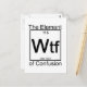 Die Wissenschaft hat eine neue Chemikalie im Periodensystem abgeschieden - das als WTF abgekürzte Element der Verwirrung. Sie treffen sich täglich - es ist für Frustration und Verwirrung verantwortlich, wenn Sie gesimst, spielen oder mit Ihrem Chef oder Ihren Eltern sprechen. Chemie für die Massen - ein perfektes Geschenk für jeden!