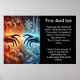 Eine elementare Umarmung wird in dieser künstlerischen Darstellung von zwei Händen dargestellt, Feuer und Eis. Die eisblaue Hand, die mit Frost und Eiskeln wirbelt, steht für Kälte und Klarheit. Die feurige orange und rote Hand, die mit Flammen und Rauch wirbelt, verkörpert Wärme und Leidenschaft. Der Hintergrund ist ein Farbverlauf aus dunklen, rauchigen Tönen, die den Kontrast hervorheben. Lichteffekte unterstreichen das elementare Thema. "Feuer und Eis" steht in der fett- und modernen Typografie ganz oben.