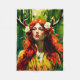 Elen der Weisen, oft als antike und mystische Figur dargestellt, wird in diesem Porträt mit einer unverwechselbaren und faszinierenden Erscheinung dargestellt. Sie wird mit lebendigen roten Haaren gezeigt, die ihre tiefe Verbindung zur Natur und ihren feurigen, ungezähmten Geist symbolisieren. Ihre Haare fließen frei, verkörpern die Wildnis der Natur und ihre Rolle als Hüterin. Elen ergänzt ihre mythische Präsenz und ist mit einem Paar prächtiger Antlers geschmückt. Diese Geweihten, ein Kennzeichen ihrer Darstellung, stellen ihre tiefe Bindung an den Wald und seine Kreaturen dar und symbolisieren Stärke, Führung und ein profundes Verständnis der natürlichen Kreisläufe. Diese Darstellung von Elen versetzt sie in einen üppigen, grünen Wald, ihre natürliche und spirituelle Zuhause. Der Wald um sie herum wimmelt von Leben, von mächtigen alten Bäumen bis hin zu den kleinsten Farnen, die alle in gedämpftem Sonnenlicht baden, das durch den Baumkronen filtert. Diese Umgebung unterstreicht nicht nur ihre Rolle als Beschützerin der Wildnis, sondern schafft auch ein Gefühl von Ruhe und Harmonie, das ihren Status als Gottheit von Wegen und Kreuzungen widerspiegelt, indem sie diejenigen, die durch die natürliche Welt reisen, führt und beobachtet. Elen of the Ways ist in diesem künstlerischen Rendering eine perfekte Mischung aus wilder Schönheit, spiritueller Kraft und einer tiefen, beständigen Verbindung zur natürlichen Welt, die sie zu einem inspirierend und mächtigen Symbol für diejenigen macht, die zu den Geheimnissen und Wunder der Natur gezeichnet sind.