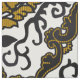 Diese bestimmte Version ist ein "Scheinsamt und ein goldener Entwurf"; sie ahmt den Samt (mit den kleinen "Haaren" im Druck) sowie die goldenen Teile des Gewebes mit Reihen der goldenen Schleifen nach.
