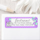 Adorable graue Gingham und Polka Dot Elefant Rücksendeadressen-Aufkleber mit farbenfrohen Minzgrün und lila Ballons für eine neutrale Babydusche. Ändern Sie die Hintergrundfarbe wie gewünscht.