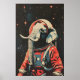 Elephant Astronaut Poster, Elephant Retro Print Poster