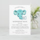 Sweet Elefant Design Babydusche per E-Mail Einladungskarte. Schicken Sie diese Karte an Gäste, die wegen der Entfernung etc. nicht an der Dusche des Babys teilnehmen können. Es gibt Registrierungsinformationen und eine süße Nachricht, die Freunde und Familie dazu anregen, Geschenke und Liebe per Post zu versenden.
