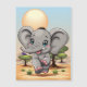 Elephant Baby Jumping Happy in African Savannah Magnetkarte
