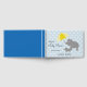 Dieses niedliche gelbe und blaue Gästebuch mit Babydusche ist mit einem digitalen zeichn eines Babyelefanten ausgestattet, dessen Mutter einen gelben Schirm trägt. Der hellblaue Hintergrund wird durch Regentropfen hervorgehoben. Dieses Design ist perfekt für eine Dusche für einen kleinen Jungen.