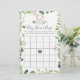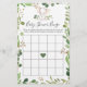 Elephant themed Baby Dusche Bingo Spielkarte bietet eine Aquarellbild Elefanten Illustration und Aquarell Grüne eucalyptus Garland und eleganten handgeschriebenen Stil Schriftart.