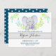 Gender Neutral thematische Babydusche Einladungen mit einer hübschen Elefantenillustrierung von Valarie Wade. Der Elefant ist in hellen Rosa- und Blautönen gehalten. Dieser kleine niedliche Elefant krabbelt ein lila schattiges Herz. Mehrfarbige Blätter in einem gelben bis blauen Farbverlauf befinden sich im Hintergrund. Einfach zu anpassende Vorlage ermöglicht es Ihnen, die Einladungen zu Ihrem eigenen zu ändern.