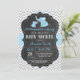 Elephant Baby Dusche Einladung Blue und Gray Card. Junge Babydusche lädt ein. Tafel. Grau Zickzack. Blaue Schleife. Für weitere Anpassungen klicken Sie bitte auf die Schaltfläche "Anpassen" und verwenden Sie unser Designwerkzeug, um diese Vorlage zu ändern.