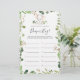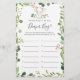 Elephant themed Baby Dusche raten, was in der Windeln Taschenspielkarte ist eine Aquarellbild Elefanten Illustration und Aquarell Grüne eucalyptus Garland und eleganten handgeschriebenen Stil Schriftart.