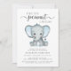 Ein niedlicher Junge spuckt Einladung mit "A Sweet Little Peanut Is On Your Way", geschrieben in sanft grauer, moderner Typografie und einem stylischen Drehbuch, und einer pastellblauen Aquarellfarbe eines Babyelefanten. Sie können den Namen der Mutter und das Baby Sprinkle Details in einfachen grauen Typografie personalisieren.