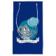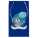 Personalisiertes Design mit Abbildung niedlicher kleiner Elefanten mit blauen Party-Ballons auf blauem Hintergrund; Kinderdesign von Maxi Harmony; mit anpassbarer Textvorlage für Ihren Namen oder Ihre Nachricht