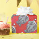 Animal Parade Festival Elephant Weihnachtsgeschenke und Accessoires zeigen unser lustiges Kunstwerk eines niedlichen Elefanten, der in einer roten Weihnachtsmannmütze stehend in einer verschneiten Landschaft gegenüber einem von unserem talentierten Kinderbuch-Illustrator Traci Van Wagoner gemalten dunkelblauen Sternenhimmel verziert ist. Auf der Rückseite dieser lustigen Tiergeschenke finden Sie auch unseren skurrilen Elefanten vom Rücken, der einen heiligen Kranz mit einem roten Weihnachtsbogen trägt. Unsere festliche Elefantenkunst ist ein einzigartiges Geschenk für Weihnachtsliebhaber, Elefanten, Tierfreunde, Safari-Tierfreunde, afrikanische Tierfreunde und niedliche Kunstliebhaber.