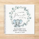 Ein niedliches Gästebuch für Ihre Babydusche mit dem Titel "A Sweet Little Peanut Is On Your Way", das in einer Mischung aus moderner Typografie und einer stilvollen Schrift geschrieben wurde, und einer Aquarellfarbe eines pastellblauen Babyelefanten in einem Kranz aus Eukalyptusgrün. Personalisieren Sie sich mit dem Namen der Mutter und dem Duschdatum.