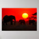 Elephant Family in Sunset Poster