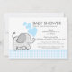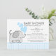 Gemütliche Elefantendusche mit grauem Gingham-Karo-Muster und blauen Herzen.