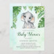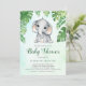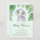 Diese Elefanten mit Babydusche sind mit einem niedlichen whimsical Elefant mit Monstera-Blätter und Grünpflanzen auf einem Aquarellboden ausgestattet. Personalisieren Sie sie mit Ihrem Text.