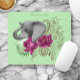 Seitenprofil eines Elefanten mit dem Kofferraum. Fuchsia lotus Blume und Henna in einer grünen Umgebung.