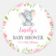 Rosa Rundkleber mit niedlichem Elefant für eine kleine Erdnussdusche, Sprinkle, Geburtstag oder anderes Party. Made to match my Pink Peony Elephant Collection.