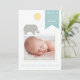 Niedlich Elephant mit Balloon Birth Announcement Anpassbare Geburtsankündigung mit einer grauen Elefantenillustrierung mit einem gelben Ballon.