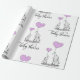 Fügen Sie diese niedlichen Mami und Baby Cartoon handgezapften Elefanten Baby Dusche Geschenkpapier. Moderne Babypastelllavender lila Herzen mit grauen Elefanten. Ideal, um das Babyduschgeschenk von Mama zu verpacken.